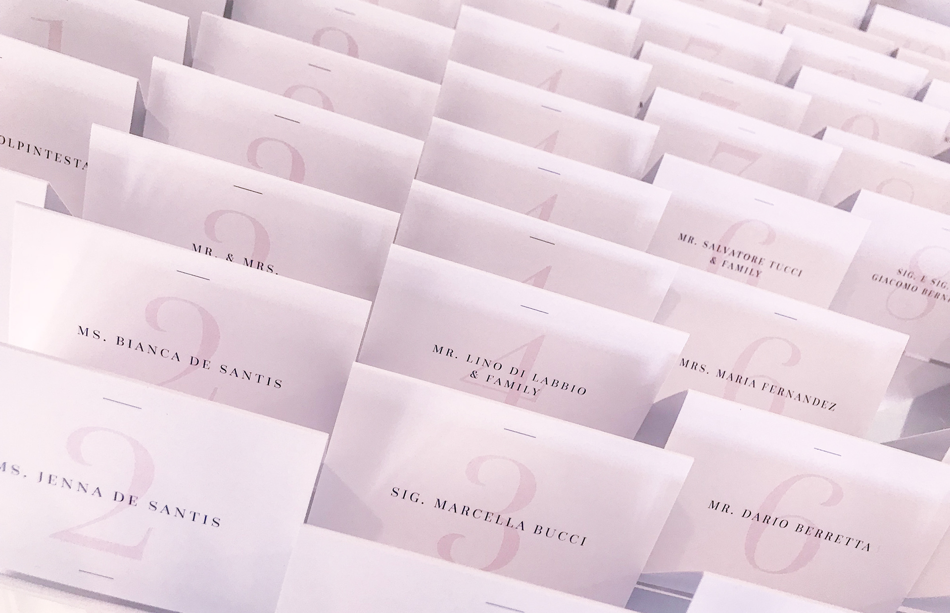A custom designed monogram based on the bride and groom's initials was the foundational design element throughout the wedding identity. The wedding invitation—which was intricately laser cut on a navy blue, linen cover stock—was designed as a folder that opened up to reveal the event information and the contained RSVP card and return envelope.